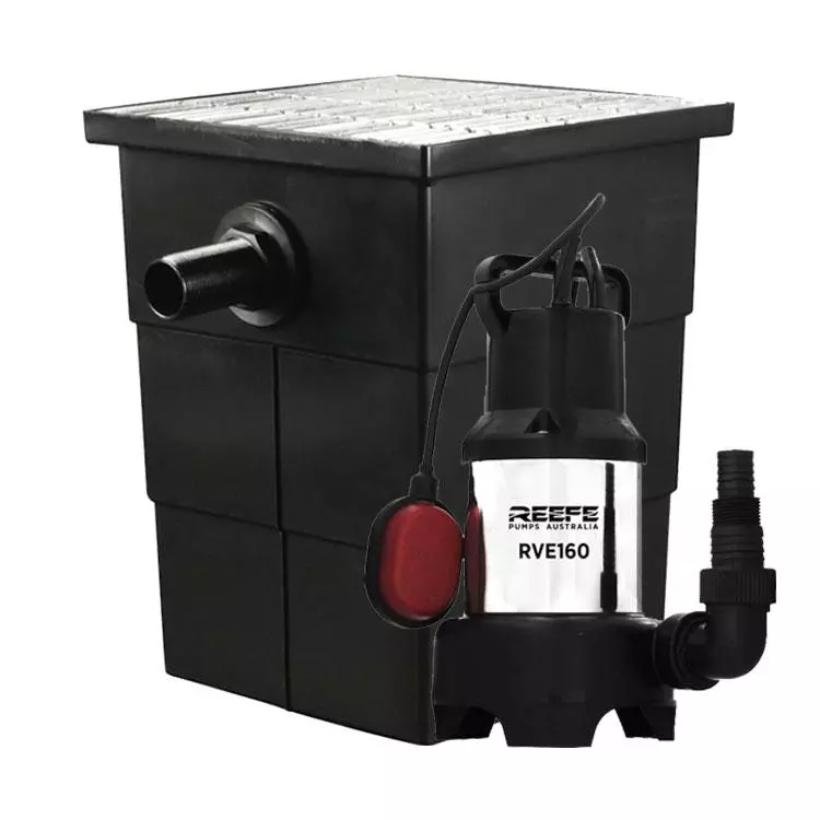 The Reefe QUP155-T undersink pump system is ideal for confined spaces, such as under benches, under sinks and in cupboards. An undersink pump system is perfect for transferring waste water to separators, or for lifting water from basements to street level waste connections and comes complete with a high quality vortex sump pump.