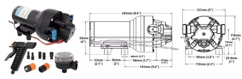 >Jabsco Hotshot HD5 12V Deckwash Pump Kit Inclusions